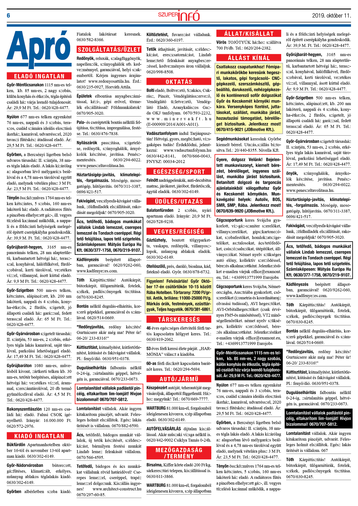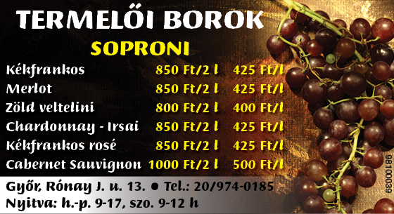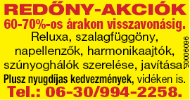 Négy alkalomnál több megjelenés, illetve nagyobb méretű hirdetési felület esetén további kedvezményekért hívja szerkesztőségünket! Telefonszámaink: 96/310-991, 0670/978-6599.